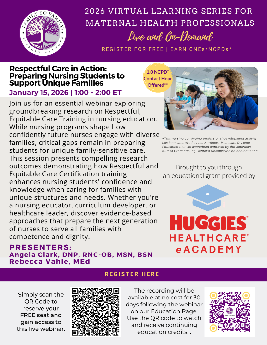 These webinars are designed to empower nurses to learn, grow, and thrive as they provide compassionate, equitable care to every family.